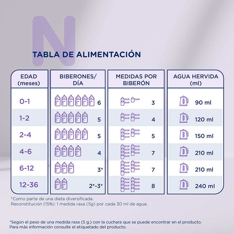 A partir de los 6 meses, Novalac AminA cubre los requerimientos nutricionales como parte de una dieta diversificada, que deberá introducirse progresivamente siguiendo los consejos de su pediatra. Un uso prolongado como única fuente alimentaria en la dieta, sólo debe realizarse con una adecuada monitorización del estado nutricional por el pediatra y en función del caso.